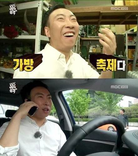 박명수의 가짜 가방을 훔치고 좋아하는 모습을 보이는 등