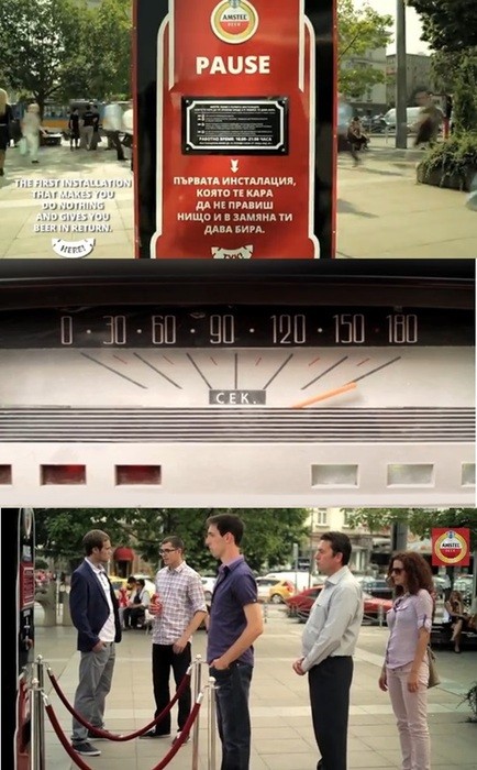 하지만 자판기 앞에서 휴대폰을 만지거나 대화를 하면 맥주를 받을 수 없다. 이는 일종의 캠페인으로 현대인들이 바쁜 일상에서 벗어나 3분이라도 여유를 가지라는 메시지를 담고 있다.
