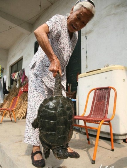 이 거북은 허난 성 핑딩산시에서 땅을 갈던 농민이 발견했으며, 몸길이 45cm, 무게 6kg에 달하며, 미국 남동부에 서식하는 [악어 거북]으로 밝혀졌다.