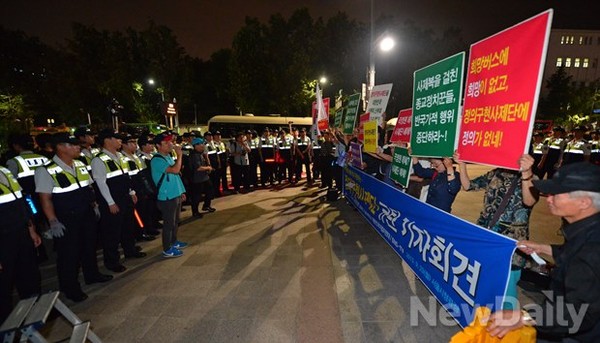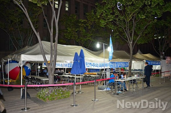애국단체 회원들도 지지 않았다.“야이, 빨갱이들아, 너희 천막은 불법 아니냐?”