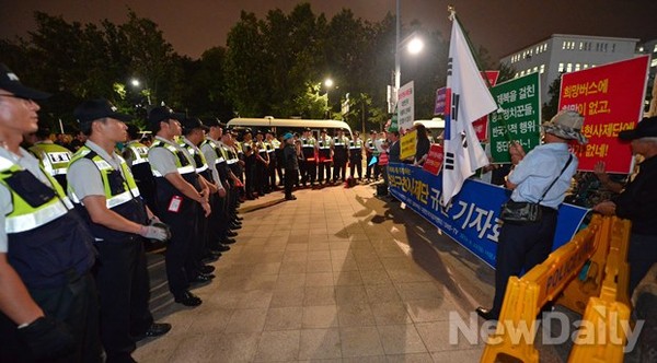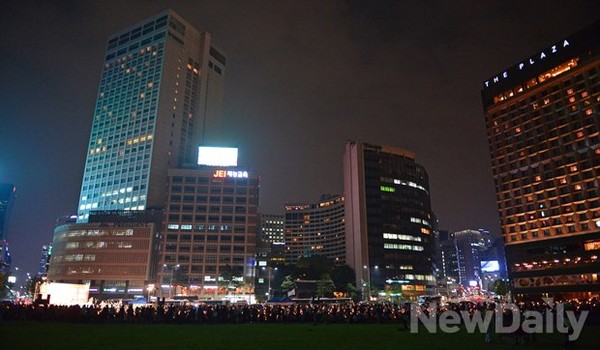 서울시청 광장 끄트머리 귀퉁이에 몰아넣고,