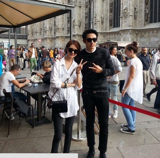 공개된 사진 속 이요원과 임슬옹은 밀라노의 아름다운 거리를 배경으로 선글라스를 낀 채 손가락으로 브이를 그리며 카메라를 응시하고 있다.