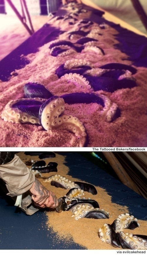 공개된 사진에는 옛날 선원들 사이에서 공포의 대상이었던 바다괴물 크라켄을 형상화한 케이크 모습이 담겨 있다. 북극 바다에 산다는 대왕 문어다리 크라켄은 2km가 넘는 거대한 몸길이를 자랑한다.