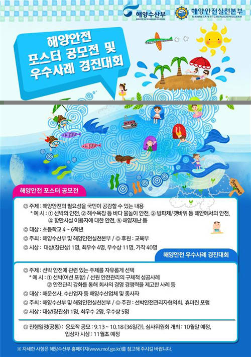 공모주제는 선박 안전, 물놀이 안전, 해양재난 예방 등