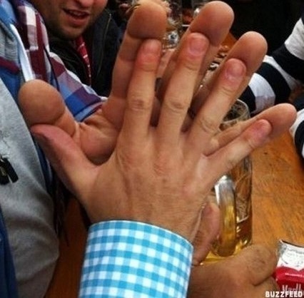 공개된 사진에는 하늘색 체크 셔츠를 입은 손과 거대한 손이 맞대고 있는 모습이 담겨있다. 특히, 두 사람은 성인임에도 불구하고 손 크기는 손가락 한 마디 이상의 길이와 2배 가까운 두께 차이를 보여 놀라움을 자아낸다.