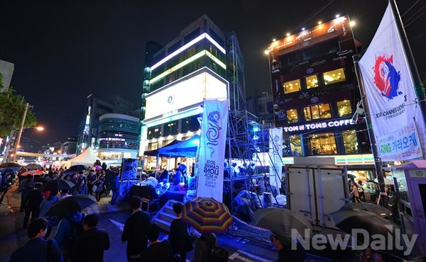 서울 마포구 상상마당앞 홍대주차장 거리에서