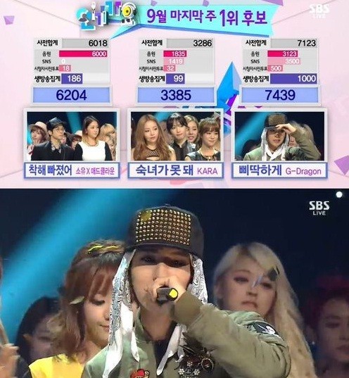 (지드래곤 1위, 사진=SBS 인기가요 방송 캡처)