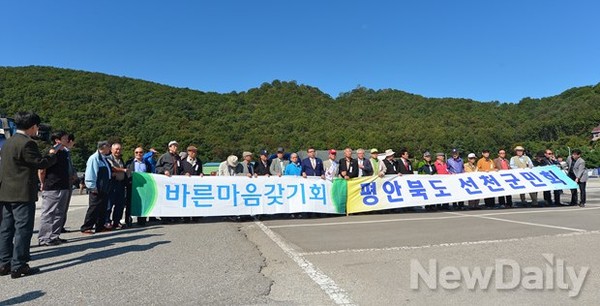 <바른마음갖기회> 회원 40여 명이 참가했다.이날 모두 10개의 대북풍선이