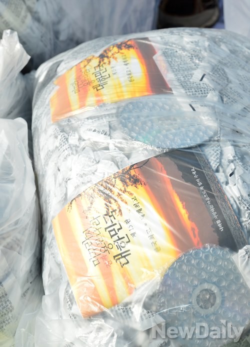 전단지 20만 장이 들어 있다.전단지에는