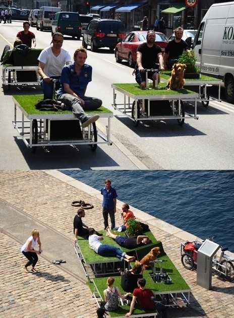 세계 최초 공원 자전거는 미국의 디자인 스튜디오 리바(Rebar) 그룹이 디자인한 것으로 지난 7월 열린 세계 최초의 공원 자전거 프로젝트. 인간과 자연의 결합을 상징하며, 실제 공원을 옮겨놓은 듯한 풍경이 눈길을 끈다.