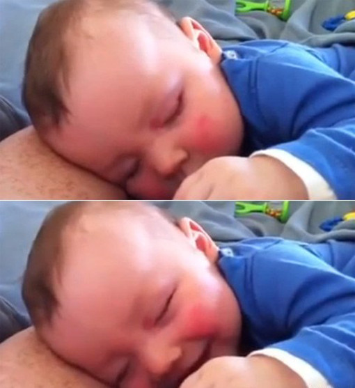 공개된 영상에는 아빠의 다리에 머리를 기대고 새근새근 잠을 자고 있는 아기의 모습이 담겨 있다. 특히, 아기는 자다가 무슨 좋은 꿈이라도 꾸는 지 베시시 미소를 짓고 있어 눈길을 끈다.