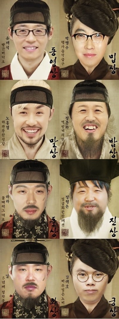 유재석의 관상은 [동영상]으로 빨간비디오라는 설명이 덧붙여 있으며, 박명수는 [밉상], 하관이 긴 노홍철은 [말상], 식신 정준하는 [밥상], 하하는 [돌상], 정형돈은 [진상], 길은 [화상]이라고 적혀 있다.