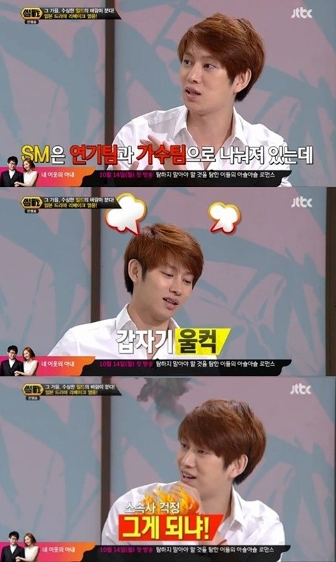 김희철은 “SM은 연기팀과 가수팀으로 나눠져 있다”며 “그런데 연기팀도 프로모션을 너무 가수처럼 한다. 그 부분에 대해서는 내가 맨날 뭐라고 했었다”고 울컥했다.