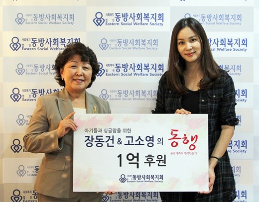 장동건 고소영 부부가 기부한 1억원은 동방사회복지회 입양대기아동과 싱글맘들의 복지 증진을 위하여 쓰인다