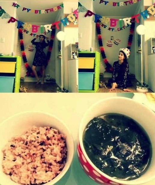 공개된 사진 속 수지는 파티용 모자를 쓰고 엄마가 직접 꾸며준 생일 장식 앞에서 깜찍한 포즈를 취하고 있다. 특히, 수지는 엄마가 직접 끓여준 미역국 인증샷을 함께 게재하며 감사의 마음을 표현했다.