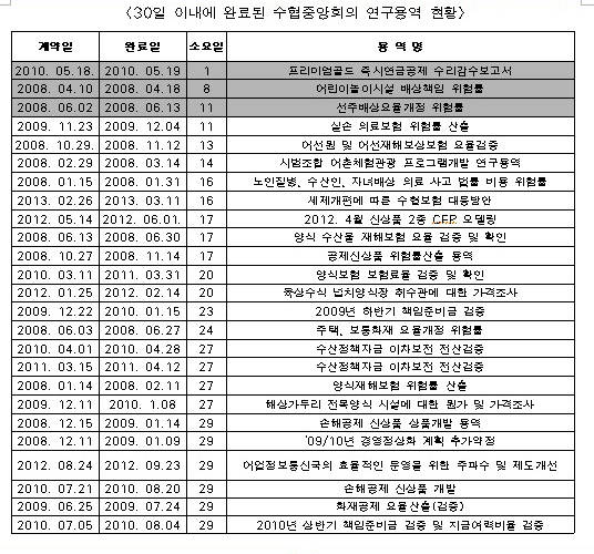 수협중앙회는 보고서 완료기간이 단 하루짜리인 연구용역서를 발주했다.