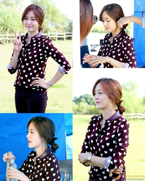 특히, 성유리는 가죽 소재의 카라와 하트 무늬가 프린팅 된 블라우스를 착용해 러블리하면서도 시크한 분위기의 [힐링 룩]을 완성했으며, 느슨하게 묶은 헤어스타일로 내추럴하고 단아한 느낌을 연출해 눈길을 끈다.