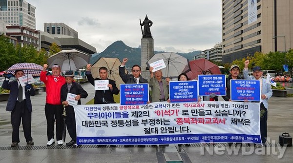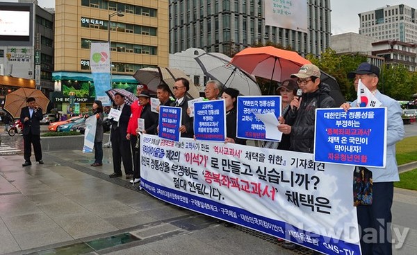 [교학사 교과서 채택 촉구 기자회견]을 가졌다.기자회견에 참석한