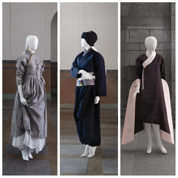 ▲ 강영숙(솟대 촌), 김문경(필월 우리옷), 김민정(한복 린) 한복디자이너의 작품