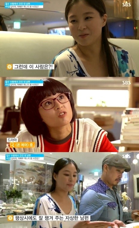 이날 방송에서 김희라는 최초로 며느리를 공개했고, 김희라 며느리는 다름 아닌 SBS 드라마 <온에어>, <씨티홀> 등에 출연한 바 있는 배우 강주형이었다.