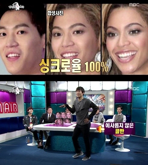 이날 MC 윤종신은 “존박과 비욘세가 동일인물이라는 설이 있다”고 언급했고, 이후 존박이 비욘세로 변화하는 과정이 담긴 합성사진이 등장해 웃음을 자아냈다.
