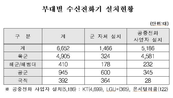 전군의 중대급 부대에 설치했다]고 밝혔다.[수신전용 전화]는