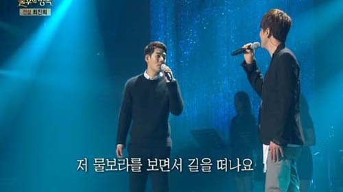 "모든 것을 내려놓고 오직 노래만 부르기 원했다"는 말처럼 오직 노래에 집중하여 부르고 나서 행복한 얼굴로 서로를 쳐다 보는 <제이투엠>.노래를 마치고 사회자 신동엽이 "말이 9년이지 얼마나 힘드셨어요?"라는 말에 울지 않기로 약속했는데 그만 주체할 수 없이 터져 나오는 두 남자의 눈물!