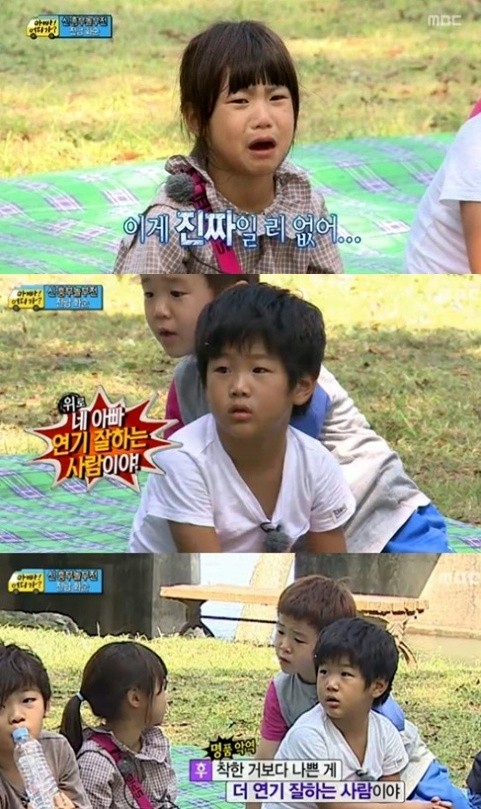 급기야 지아는 무대로 난입해 “아빠 하지 마”라며 울음을 터뜨렸다. 이를 본 윤후는 지아에게 “네 아빠 연기 잘하는 사람이야. 원래 착한 것보다 나쁜 역할을 연기하는 게 더 잘하는 거다”고 따뜻한 위로의 말을 건넸다.