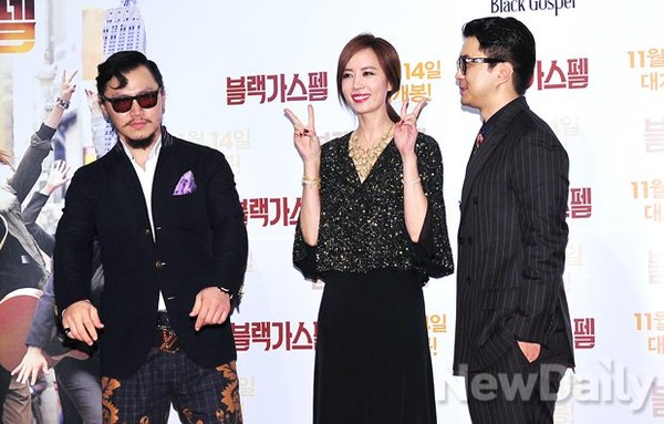 [포토]블랙 가스펠 양동근-정준 사이에서 브이 하는 김유미