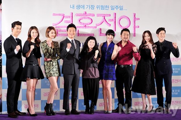 [포토]화이팅 외치는 영화 '결혼전야' 배우들과 감독