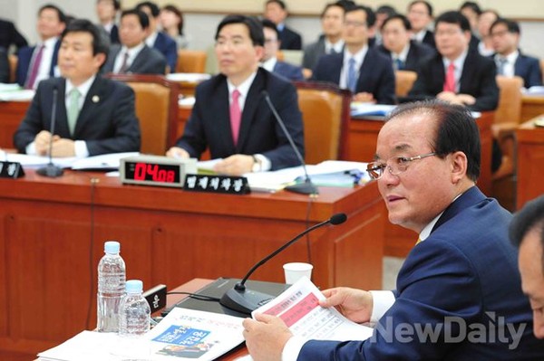 새누리당 <정갑윤> 의원이 22일 서울 여의도 국회에서 열린 국회 법제사법위원회 국정감사에서 법제처장에게 질의하고 있다.