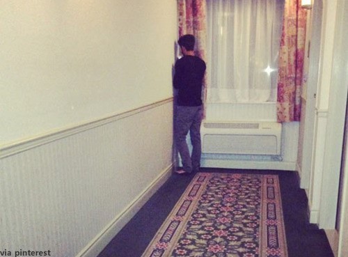 게시자는 “남성에게 벽에 붙어 있는 이유를 묻자 저 자리에서 와이파이가 잘 잡힌다고 답했다”고 설명했다.