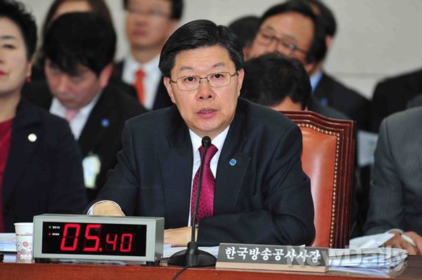 <길환영> 한국방송공사(KBS) 사장이 23일 오전 국회에서 열린 미래창조과학방송통신위원회 국정감사에서 위원의 질의에 답하고 있다.