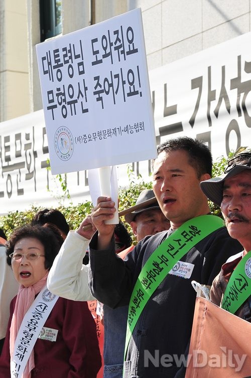 [포토]문화체육관광부 앞, 무형문화재 보유자들의 호소