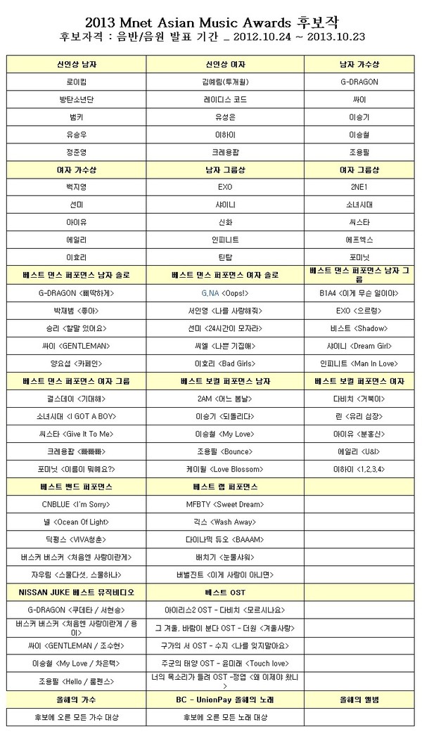 오는 11월 22일 홍콩 아시아 월드 엑스포 아레나(이하 AWE)에서 펼쳐지는2013 Mnet Asian Music Awards(이하 2013 MAMA, 주최 CJ E&M)에 노미네이트 된