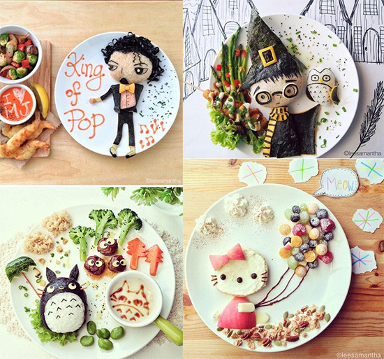 공개된 사진은 말레이시아 주부 사만다 리의 작품으로 일명 [푸드 아트]로 불린다. 사진 속에는 다양한 재료를 이용해 헬로 키티, 마이클 잭슨, 해리포터 등 유명 캐릭터들의 형상화한 음식이 담겨 있다.