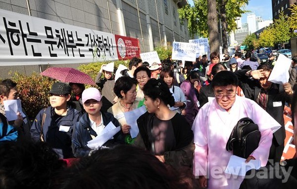무형문화재 보유자들이 이렇게 대규모로 시위를 벌이기는 처음이다.