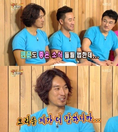 이날 김민준은 “엄태웅의 아내가 만삭일 때도 촬영장에 도시락을 싸다줬다. 인기가 많아지니까 형이 못 먹는 경우도 있다. 그랬더니 나중에는 우리 몫도 챙겨주셨다. 요리를 정말 잘한다. 대충이 아니라 요리책 그대로 나온다”고 극찬했다.