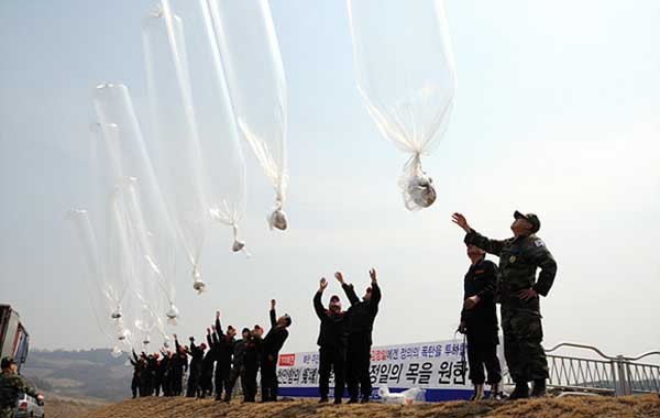 대북전단을 실은 풍선을 날릴 것이라고 밝혔다. -