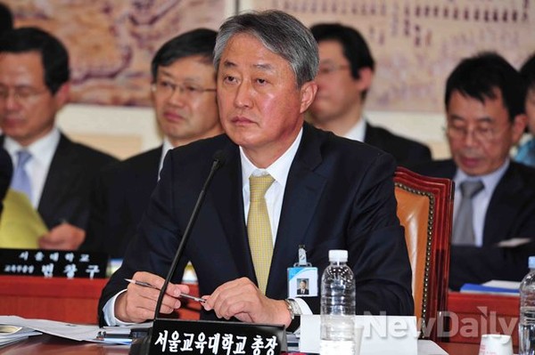 [2013국감]의원들의 질의를 듣고 있는 신항균 서울교육대 총장