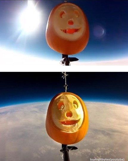 공개된 사진 속 호박은 아일랜드에 사는 할아버지 유진 머레이와 손자 세바스찬이 호박을 예쁘게 깎아 카메라와 함께 하늘로 올려보낸 것으로 알려졌다.