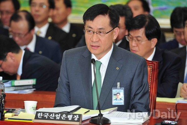 <홍기택> 한국산업은행장이 29일 오전 서울 여의도 국회 정무위원회에서 열린 국정감사에서 의원들의 질의에 답하고 있다.
