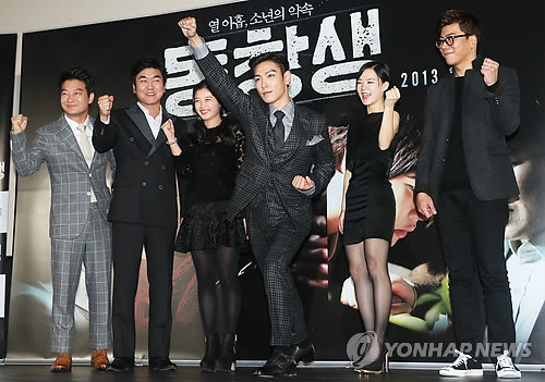 빅뱅 탑(본명 최승현)이 돌발 포즈로 웃음을 안겼다.지난 29일 오후 서울 동대문 메가박스에서 열린 영화 <동창생> 언론시사회에는 박홍수 감독을 비롯해 최승현, 한예리, 윤제문, 조성하, 김유정이 참석했다.
