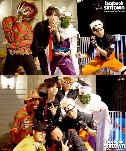 공개된 사진 속 샤이니 온유는 영화 <나이트메어>의 프레디로, 키는 <드래곤볼> 피콜로, 종현은 나루토, 태민은 마릴린 맨슨으로 변신했다.