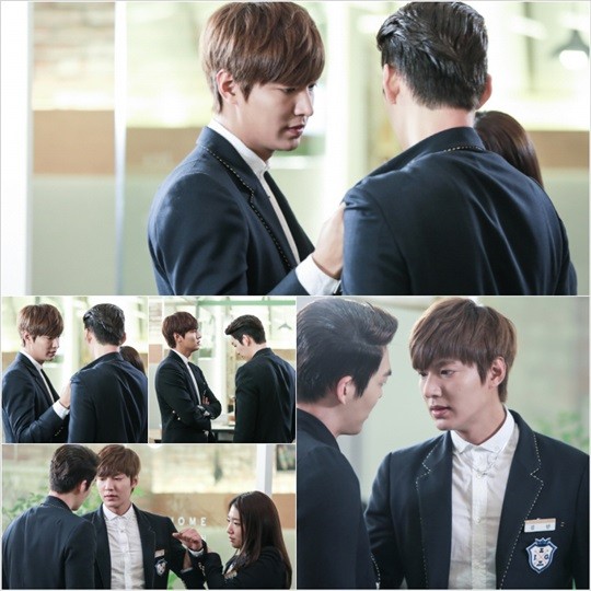 극중 김탄(이민호)이 학교식당에서 은상에게 위압적인 태도를 취하는 최영도(김우빈)와 마주선 채 차가운 눈빛으로 마주하다 급기야 영도의 멱살을 쥐어 잡게 되는 것.