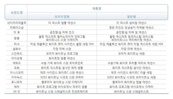 프리미엄이 일반 제품보다 최대 3.8배 비싸나 미백 성분은 같다]며