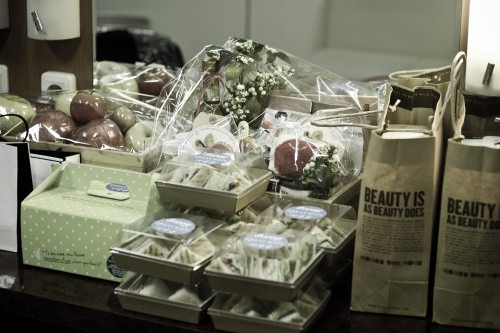사과 케잌, 사과 샌드위치, 사과음료 등을 선물하며,