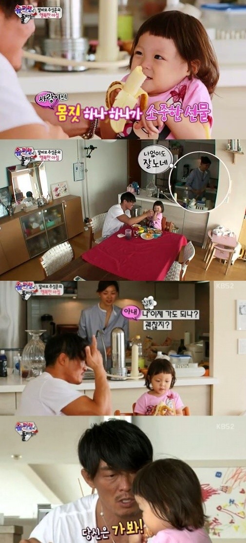 알콩달콩 다정한 부녀의 모습을 본 야노시호는 “난 이제 가도 되느냐”고 물었고, 추성훈은 야노시호와 눈도 마주치지 않은 채 “괜찮아. 내가 할께. 당신은 가 봐”라고 답했다.