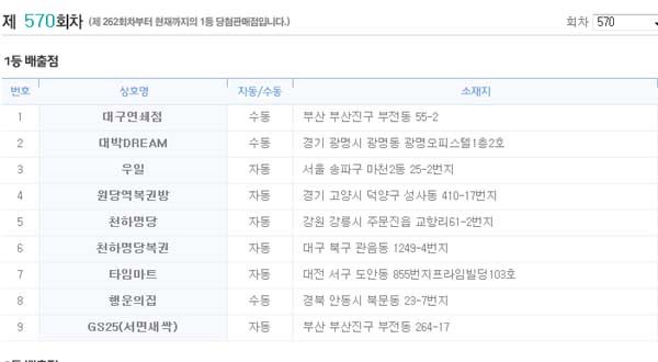 부산 부산진구 부전동에서 나왔다.수동 1등 당첨자는