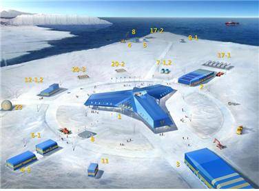 연면적 4,458㎡에 연구 및 생활동 건물 16개동으로 구성되는 <장보고기지>는